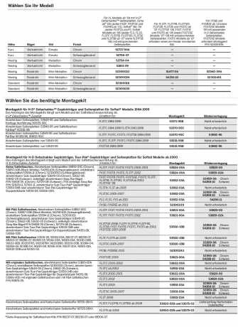 Passend fĂŒr Harley-Davidson Softail 00-17 FXST, FXSTB, FXSTS, FXSB, FXSBSE, FXSTSSE/2/3, FLSTFSE2, FLSTSE/2/3, FLST, FLSTF, FLSTFB, FLSTN, FLSTNSE, FLSTSB, FLSTSC mit oder ohne Satteltaschen (auĂer Heritage Satteltaschen P/N 90876-05). Erfordert das Montagekit und ggf. eine Blinkerverlegung. Siehe Ăbersicht fĂŒr das jeweilige Modell.