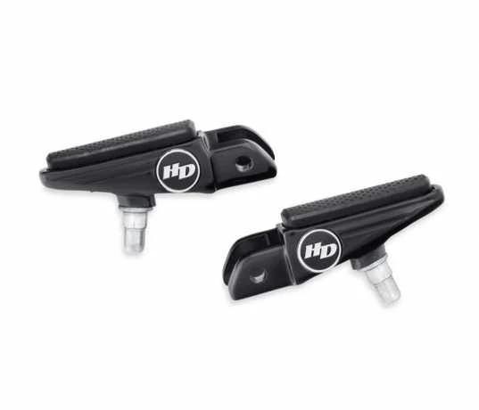 Die Harley-Davidson Defiance Fußrasten sind durch Kurven und einem matten Finish definiert. Das Design beinhaltet ein Feld aus texturiertem schwarzem Gummi, das mit tiefen Längslinien umgeben und mit einem zeitgenössischem H-D Logo ausgestattet ist.