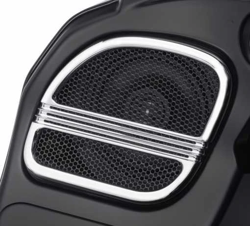 SchlĂ€gt einen neuen Ton an. Defiance Lautsprechergitter schmiegen sich an originale oder Boom! Audio Stage I Lautsprecher. Die mit einem Wabenraster und dĂŒnnen horizontalen Leisten versehenen Defiance Lautsprechergitter schĂŒtzen die Lautsprechermembran und sorgen fĂŒr einen Hauch Luxus am Soundsystem des Bikes. Genau passend zu Ihrem Custom-Style.