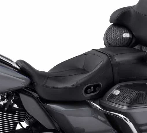 Verlängern und optimieren Sie Ihre Fahrsaison dank der in diesem Premium-Sitz für Touring- und Trike-Modelle integrierten Kühl- und Heiztechnologie. Das elektronische Heiz-/Kühlsystem ist im Sitz selbst untergebracht. Der Sitz kann nach dem Abziehen eines einzigen Kabels einfach entfernt werden. Dieser Sitz bietet eine branchenführende Kühlleistung, und die Heizfunktion wurde so verbessert, dass sie die gewählte Temperatur doppelt so schnell erreicht wie frühere Heizsitze. Der Hammock-Sitz ist unser hochwertigstes Tourensitzdesign, das für den Fahrer entwickelt wurde, der den ultimativen Langstreckenkomfort wünscht. Für den Fahrer bietet er ein schlingenartiges Stoff-Federungssystem, das wie eine Hängematte wirkt und zwei Zoll Federung über der Sitzschale bietet, gekrönt von zusätzlichen zwei Zoll traditioneller Schaumstoffpolsterung. Diese interne Federung verhindert ein „Durchschlagen“ und bietet eine Verbesserung des Komforts und der Ausdauer, indem sie den Fahrer von den rauen Straßenbedingungen isoliert. Die Soziusposition verfügt über ein mehrfach gefedertes Federungssystem, das mit zwei Zoll traditioneller Schaumstoffpolsterung ausgestattet ist. Dieser Sitz verbessert den Komfort und reduziert die Ermüdung auf langen Fahrten.