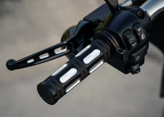 Dieses Handhebel Kit wurde fßr die Ergänzung zu Edge Cut ZubehÜrteilen entworfen. Die geschlitzten Handhebel sind mit einem Edge Cut Finish hergestellt, das an schwarzen oder auch Chromhebeln besonders gut zur Geltung kommt. Die schwarz eloxierte Oberfläche wird bearbeitet, um Rohaluminium-Highlights zum Vorschein zu bringen.