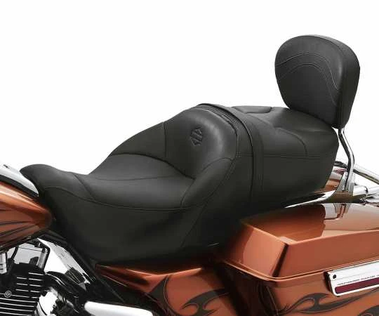 - Das schalenförmige Design der Tallboy Sitzbank dient dem Fahrer als zusĂ€tzliche StĂŒtze im RĂŒcken und der breite, angehobene Soziussitz bietet dem Beifahrer maximalen Komfort und eine imposante Aussicht