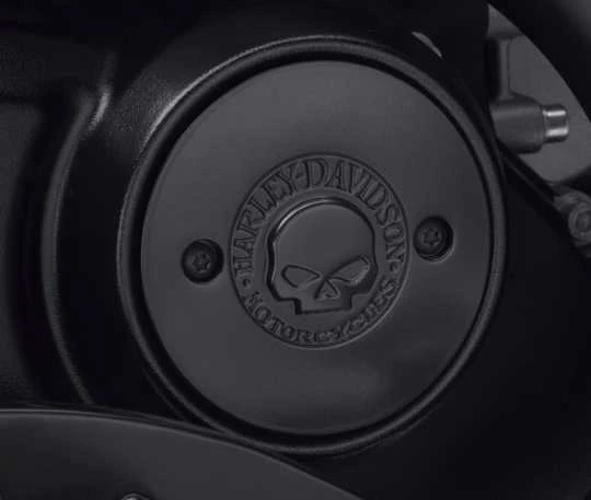 Die Willie G Skull Collection wechselt auf die dunkle Seite. Völlig in Schwarz getaucht, verleihen der Totenkopf und der Harley-Davidson Schriftzug dem Bike eine dunkle Note.