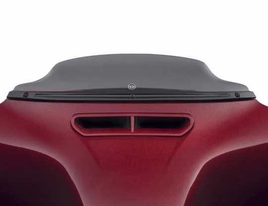 Die Custom Windschutzscheibenleiste in Billet Optik akzentuiert die äuĂere Verkleidung und kleidet das Bike stilvoll ein.